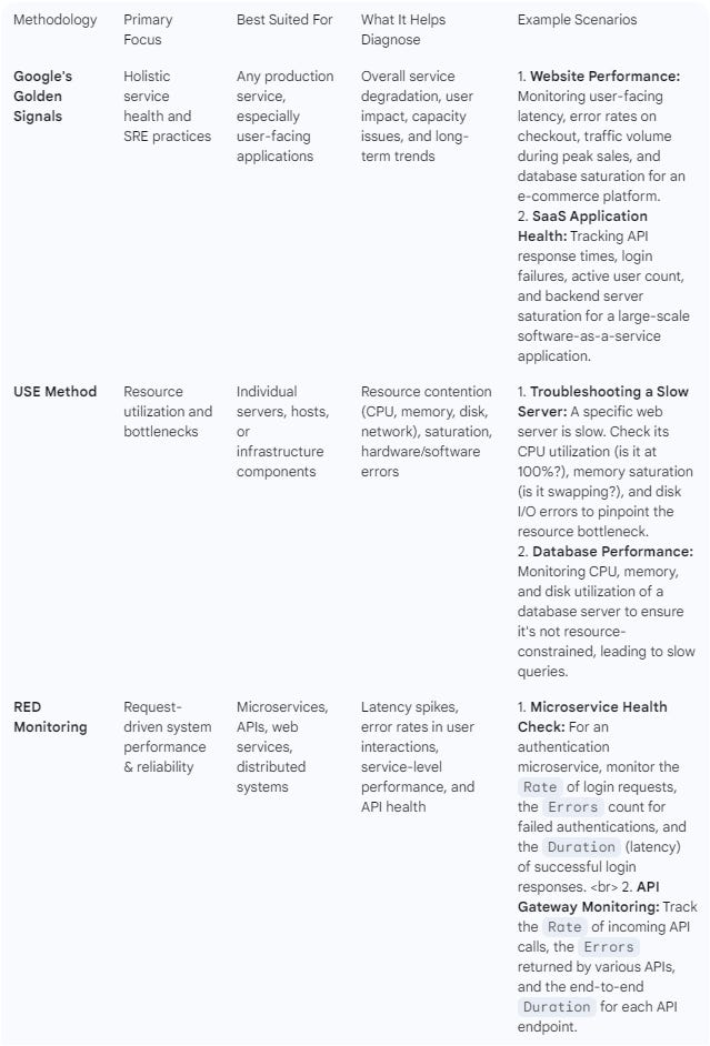 Understanding System Health: A Look at Monitoring Methodologies (USE, RED, and Google's Four Golden Signals)